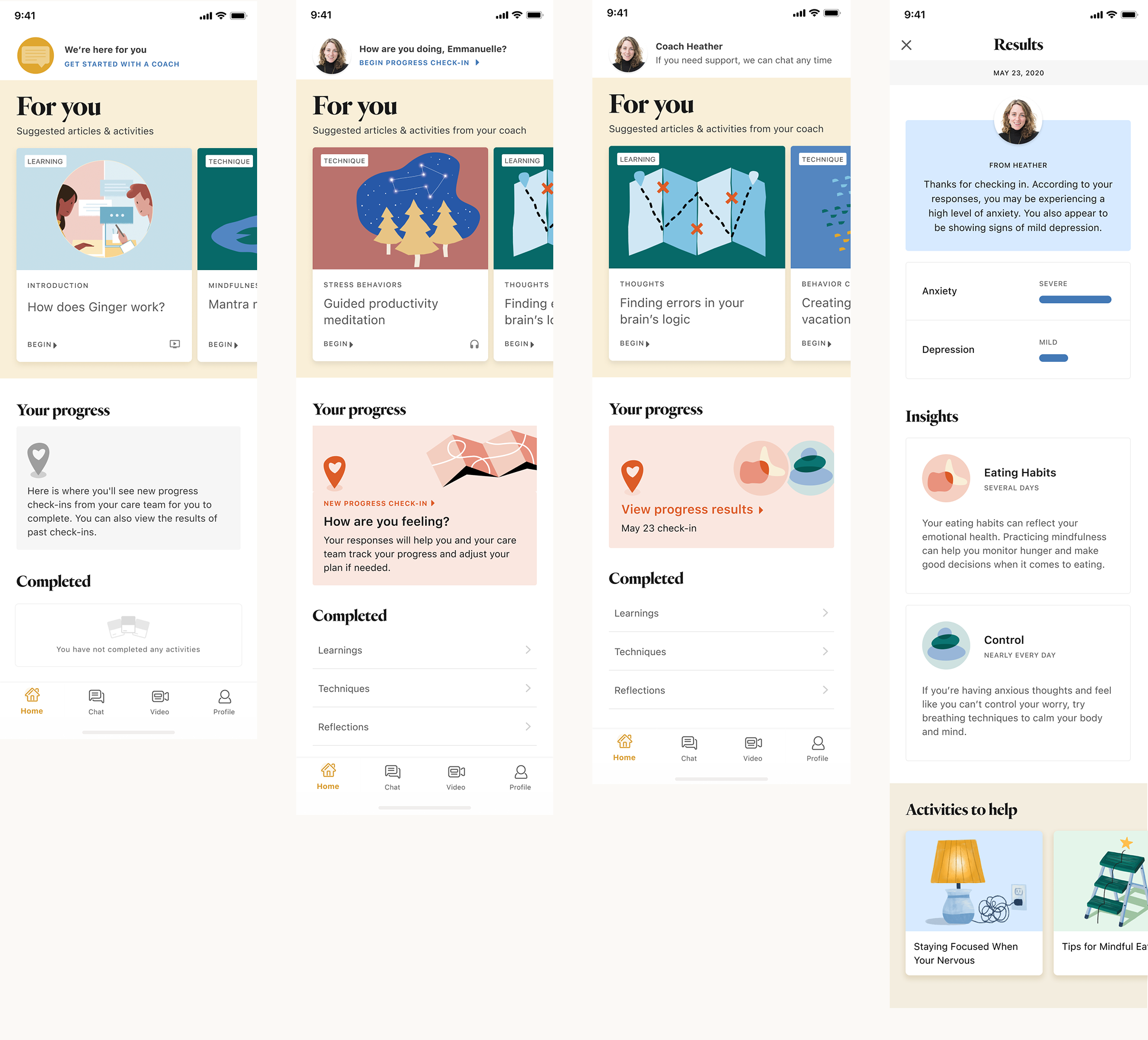 Our research began with a heuristic evaluation of the existing check-in experience. Given the short timeline, we interviewed coaches and therapists to learn what they had heard from members or observed directly about their experience with the assessment. This was done as a proxy for speaking directly with members.